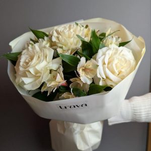 Для любимой на 8 марта ✅ Букет Шафран из французских роз и нежной альстромерии